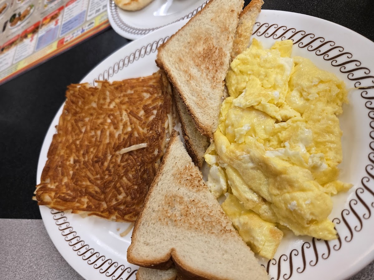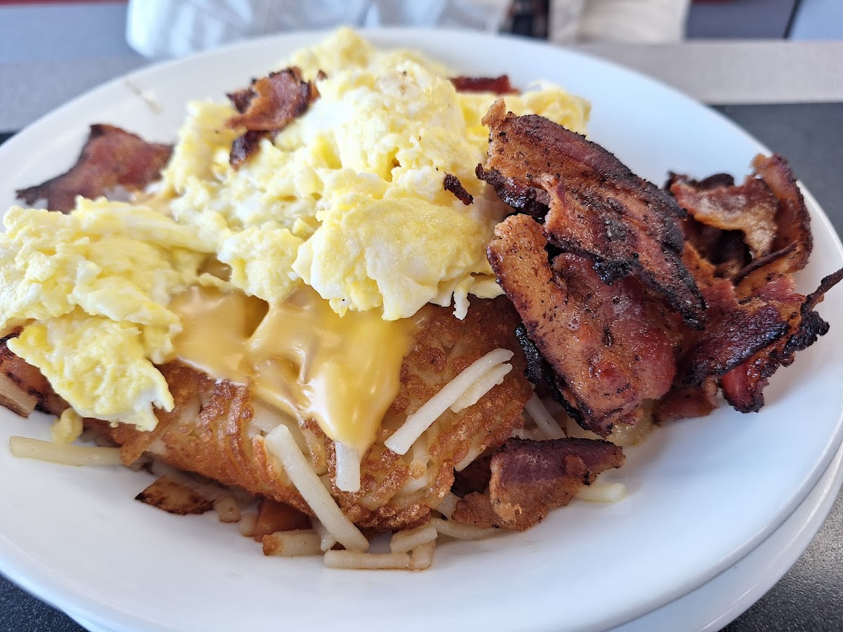 For something a little different: “Hashbrowns Scattered, Smothered & Covered” (yes, triple-layer goodness).